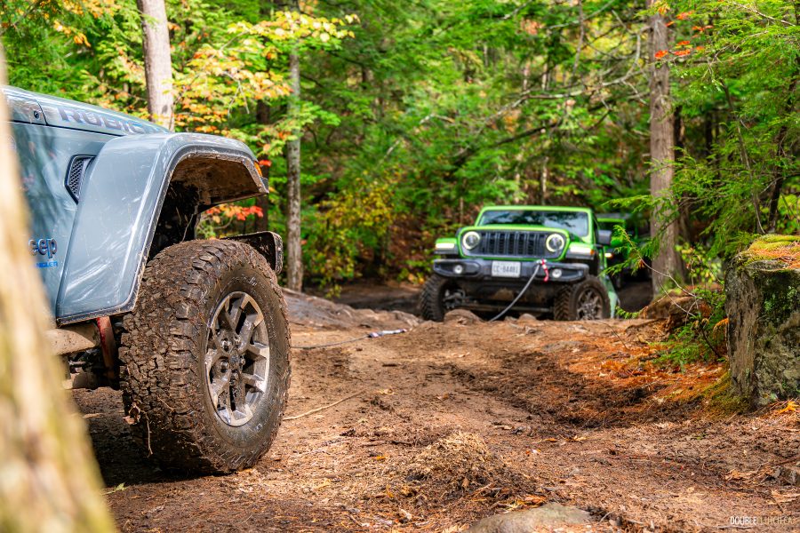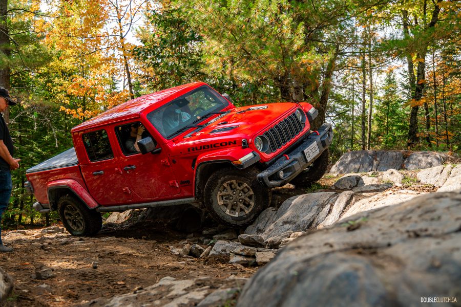 The long wheelbase Gladiators were riding on their protective barriers all day, and even the four-door Wrangler Rubicon that I was piloting made more than a few sickening crunches as it crawled over the abutments of the Canadian shield. No one from Jeep seemed to care at all; this is exactly what these things were made to do.