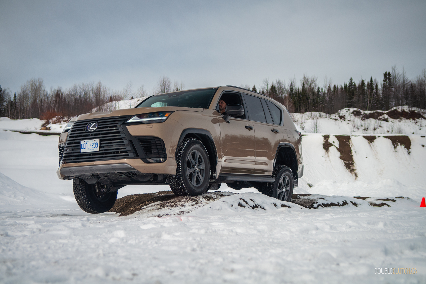 Also new for 2025 is the Overtrail+ trim. Available in two flavours in Canada—the main difference simply being an additional third row of seats—this new model adds front and rear electronically locking differentials, 33-inch all-terrain tires with 18-inch wheels, skid plates, blacked-out accents, and an earthy, two-tone khaki colour option exclusive to the Overtrail. You don’t get extra ground clearance by default, but starting at 8.1 inches plus another four and a half thanks to the air suspension setup, bottoming out probably won’t ever be an issue. With this off-road prowess and standard four-wheel-drive, the LX 700h practically walked through a modest off-road course set up by Lexus, with the extra suspension articulation proving fun to watch.
