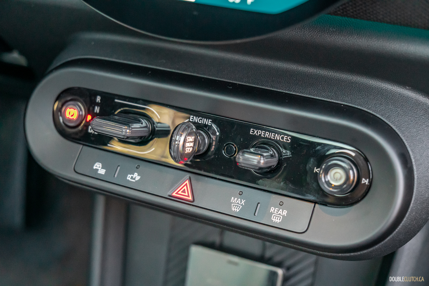 The cabin space of the new Mini is lovely, with a signature eccentric style that matches the exterior’s retro-futurism motif. It’s thoughtfully laid out, and once you’ve found the centrally mounted ignition switch, everything else is pretty straightforward. To its left is the P-R-N-D rocker switch, and to its right is the aforementioned experiences switch that toggles between a multitude of different drive modes and interior aesthetics. They're shown on the 9.4-inch circular touch display perched directly above.