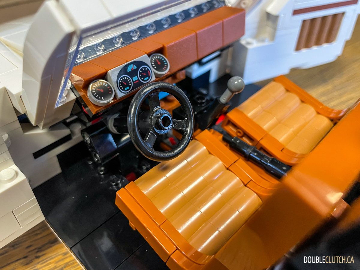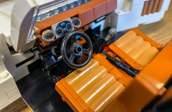 My life-sized Targa was a mishmash of the two, with the Targa body configuration but with a whale tail spoiler. Unfortunately, LEGO doesn’t allow this without diverting away from the instructions. We opted to go in the Targa direction with this build, and boy was it ever satisfying to build. The attention to detail here is simply breathtaking, with touches such as wheels that turn with the steering wheel, opening doors, engine-cover and “frunk”. If the top is removed, it fits in the “frunk” nicely.